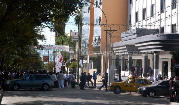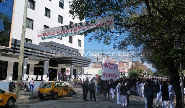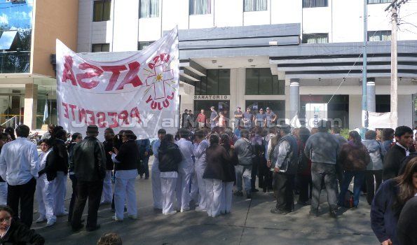Personal del ex Sanatorio Quintar y de ATSA, se congregó durante toda la jornada frente el edificio del nosocomio, ahora llamado Los Lapachos, a raíz del cambio de razón social.