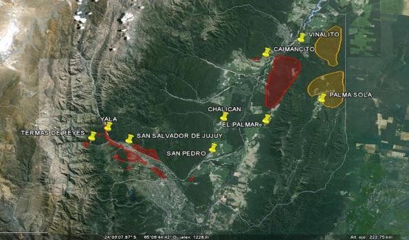 Amarillo: Zonas de recurrencias detectadas por Teledetección.