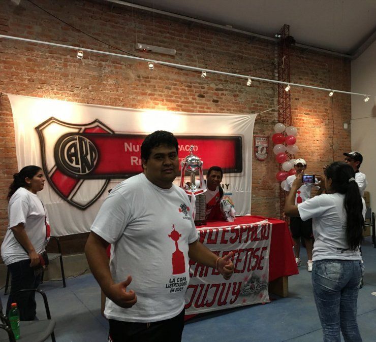 Se vivió un alborozo en el Centro Cultural Hector Tizón donde los hinchas de River jujeños se acercaron a sacarse fotos con la réplica de la Copa Libertadores que el Club de Nuñez ganó el año pasado.