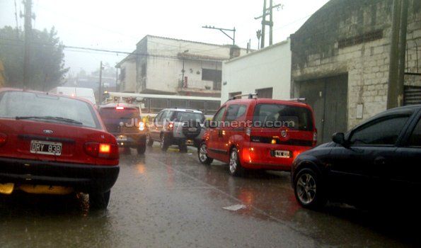 Hacia las 14.30 era imposible transitar por arterias como avenida Hipólito Yrigoyen o José de la Iglesia, que bajaban con gran cantidad de agua, ocasionando que algunos automóviles quedaran detenidos en medio de la calle, mientras que otros buscaban refugio en calles transversales y veredas.