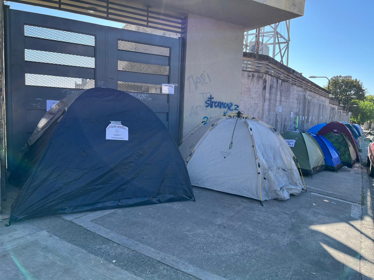 - “Llegamos ayer a las 10 de la mañana _queríamos hacer como una reunión entre el grupo pero bueno, llegamos y ya habían dos carpas antes así que nos instalamos. Somos 25 personas, estamos rotando los turnos tenemos tres turnos, día, mañana, tarde y noche”.