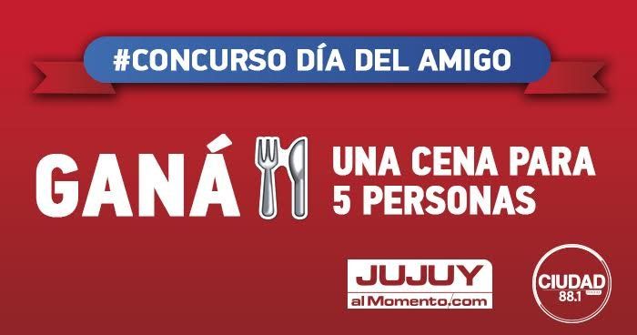 Jujuy | Jujuy | Ganá una cena para festejar el #DíadelAmigo ¿Cómo participar? Ingresá a la nota, deja un comentario etiqutando a tus amigos y participa de una cena para 5 personas.¡Festeja a lo grande con www.jujuyalmomento.com y Radio Ciudad 88.1Mhz. (Conocé el ganador el 20-07 a las 17:00) 19 de julio de 2016 - 00:00