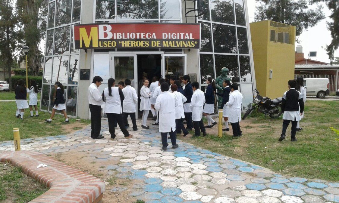 En el marco de las actividades que realiza la Comisión de Ex Combatientes de Palpalá por la "Semana de Malvinas", Don Emilio Benítez realiza las visitas guiadas en el Museo "Héroes de Malvinas". Durante la mañana de hoy recorrieron el lugar, los alumnos de la Escuela General Savio.