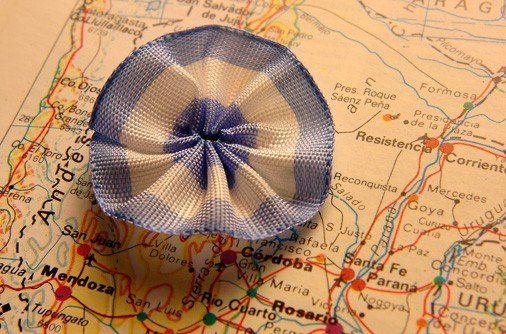 La Escarapela es el primer símbolo patrio, confeccionado con cintas de varios colores plisadas en forma redonda o de roseta. Antiguamente se la colocaba en el sombrero o morrión del soldado y luego quedó popularizado su uso “prendida en el pecho”.