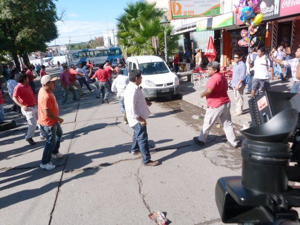 Allí comenzaron las agresiones y los golpes de puños entre trabajadores de los dos sectores, que se calmaron por la acción directa de dirigentes de ambos sectores y por la posterior llegada de efectivos policiales.