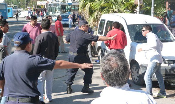 Pasadas las diez de la mañana se produjeron serios incidentes entre trabajadores de los sectores, en la esquina de Dorrego y Jorge Newery, cuando los taxistas quisieron quemar gomas en esa esquina.