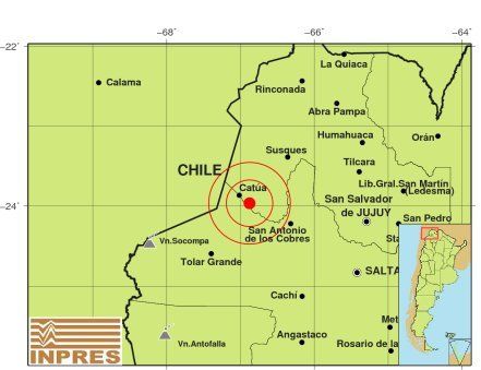 El primero de ellos se registró a las 10:43 a 165 km al Oeste de San Salvador de Jujuy, 187 km al NO de Salta, 21 km al NE de Catúa. Tuvo una magnitud de 3.3 y una profundidad de 227 km.