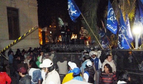 Los manifestantes de diferentes sectores ingresaron por uno de los laterales del edificio gubernamental en forma organizada y sin generar disturbios y se instalaron en la parte trasera con banderas y consignas vinculadas a la represión sufrida en el dia de ayer por parte del personal policial. Fueron cientos de personas las que se instalaron en la parte externa del edificio e incluso lo hicieron con camionetas y motos.