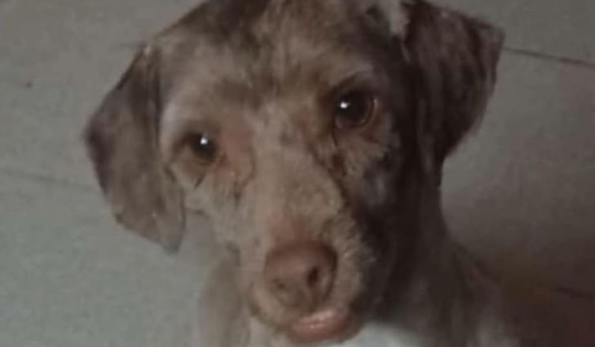 La perra es de porte mediano, pelaje color marrón claro y blanco, con rulos. Además, portaba un collar antipulgas.
