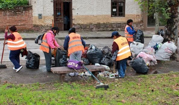 Un total de 15 operarios y un camión recolector efectuaron tareas de limpieza de veredas, desmalezamiento y desinfección en la avenida Hipólito Irigoyen, desde el Puente Cuyaya hasta el puente Argañaráz.
