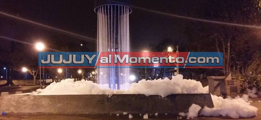 Así amaneció la fuente de La Madrid y 19 de Abri, despertó llena de espuma. ¿Picardía o acto vandálico?