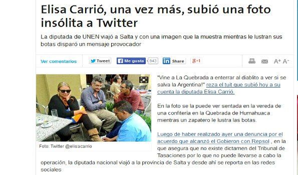 Así se desprende de una nota que publicó hace dos días el matutino porteño, que se hizo eco de un twitt de Elisa Carrió, que visitó la Quebrada días pasados.