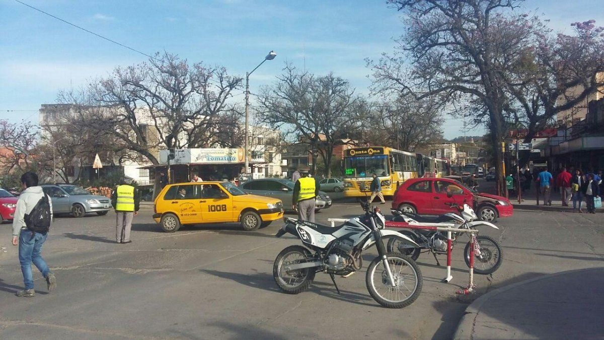 Por las obras de carril selectivo para colectivos que se realizan en avenida 19 de Abril y Lavalle personal de la comuna decidió cortar el transito a media calzada en esa esquina del puente.