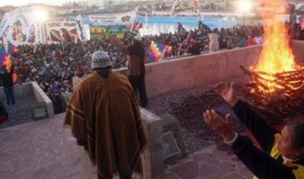 Apenas despuntó al alba, se encendió una gran fogata, alrededor de la cual Mama Quilla, amauta espiritual de El Alto, en Bolivia, realizó una invocación pidiendo al Padre Sol que a nadie le falte nada y todos tengamos una buena vida, mejores cosechas de la tierra, trabajo y por la organización.