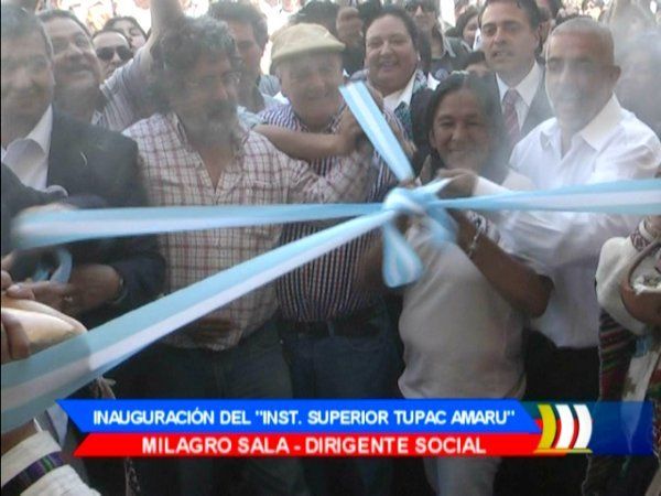 Milagro Sala, Nando Acosta, Raúl Noro, y otras autoridades cortaron la cinta e hicieron el ingreso sahumando el flamante edificio que cuenta con todas las comodidades para los alumnos que actualmente, cursan 4 carreras de nivel terciario.