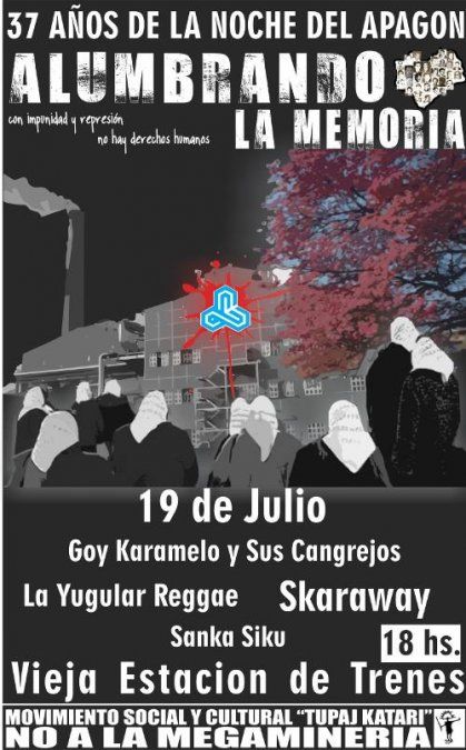 A las 18.30 del mismo día, dará inicio el recital “Alumbrando la memoria” en la ex estación de trenes, con la actuación de Goy Karamelo y sus Kangrejos, La Yugular Reggae, Skaraway y Sanka Sikus.