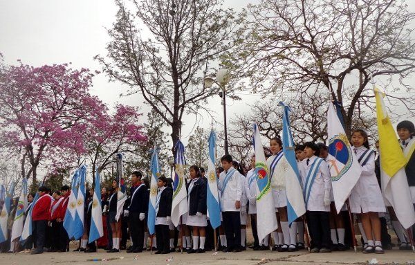 La celebración comenzó con el acto protocolar en la Plazoleta 23 de Agosto, donde participaron abanderados de instituciones escolares, docentes, funcionarios municipales, integrantes de la comisión directiva del centro vecinal, publico en general.