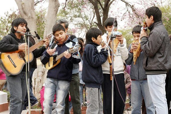Tras entonar las estrofas del Himno Nacional Argentino, con los acordes de la Banda de Música de la Policía de la Provincia, alumnos de la escuela Primaria Almirante Brown, interpretaron el Himno al Éxodo.