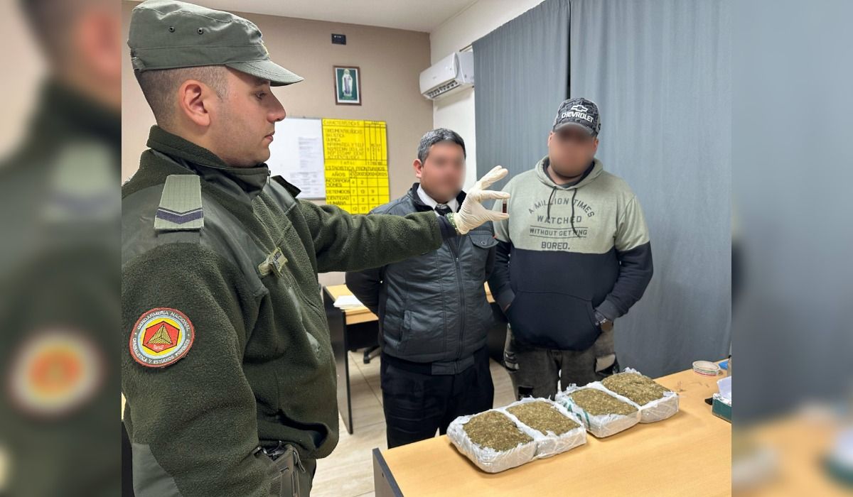 La droga fue detectada por el personal de Gendarmería Nacional, que localizó la carga de dos "panes" en una mochila que se encontraba en el portaequipajes del micro, propiedad de la inculpada.