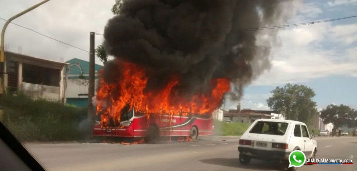 En la unidad de la empresa Unión Bus viajaban alrededor de veinte personas, que bajaron de inmediato por la rápida acción del conductor.