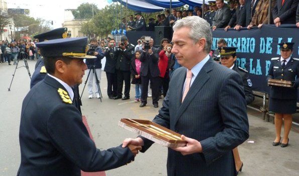 Se realizó el acto central de festejo por el nuevo aniversario de la creación de la Policía de la provincia, el que se concretó sobre calle Belgrano frente al Cabildo Histórico con la presencia de autoridades del gobierno.