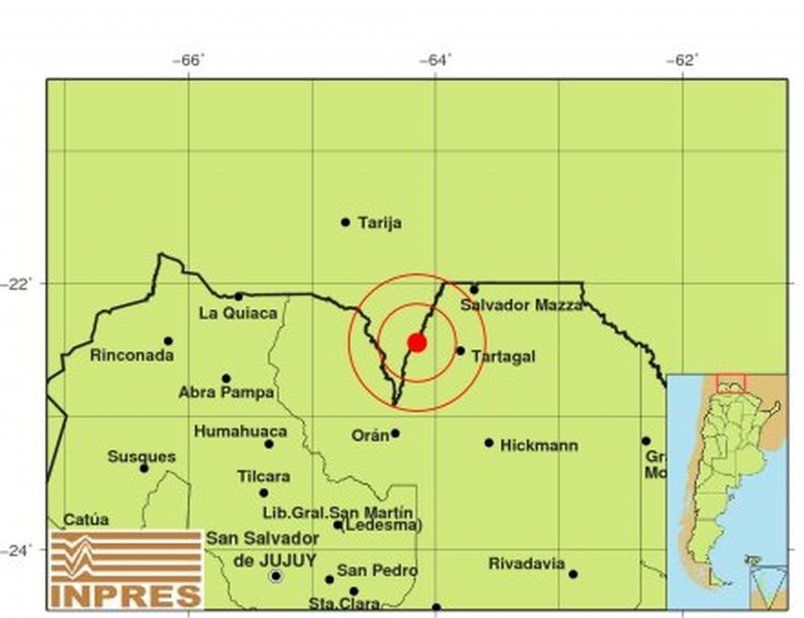 Un sismo de magnitud 5,5 en escala de Richter se registro en la región boliviana de Tarija, cerca de la frontera con Argentina. Se sintió cerca de Tartagal, a 231 km del Noreste de San Salvador de Jujuy y 299 al Noreste de Salta.