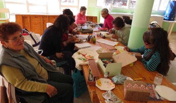 En el taller, se produce la integración y la comunicación con sus pares o con jóvenes que también participan del curso; se dispersan de sus tareas cotidianas, se relajan y comparten un tiempo y un espacio que tienen los efectos de una terapia. Por otra parte, también es una ayuda más de tipo económica, ya que algunas alumnas venden sus obras.