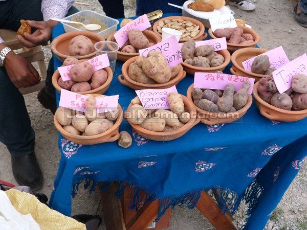El objetivo de esta feria es mostrar y recuperar las diversas variedades de papas, ya se aprovecha la oportunidad para que los productores de diferentes lugares puedan intercambiar semillas y de esta manera volver a cultivar variedades ya perdidas en una zona determinada. Oca roja y amarilla, collareja, tuni morada, imilla, cuqueña, fueron algunas de las papas que se podían apreciar y comprar en el lugar.