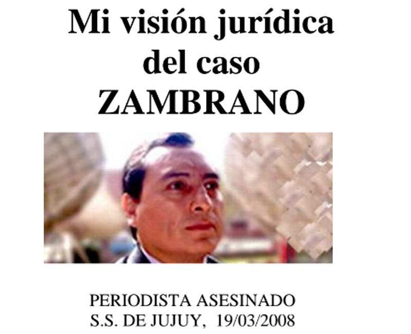 Plantea además que “si bien por el momento no pudimos llegar al fondo de lo sucedido, creo que no quedaron dudas acerca de la falacia y absurdo que ha sido pretender instalar que el homicidio de Juan Carlos Zambrano tuvo por móvil el crimen pasional”, afirma en la presentación.