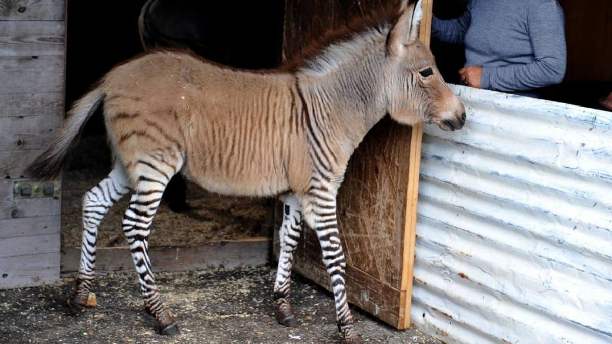 Al principio, pensaron que era por revolcarse en el barro, hasta que se dieron cuenta de que la cebra había dado a luz a un "zonkey", cuyo padre (un burro) debió dejarla embarazada durante su tiempo viviendo con los animales de pastoreo y domésticos.