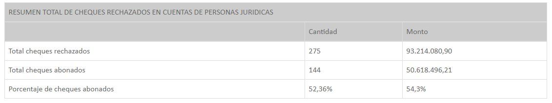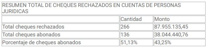 Según un informe del Banco Central de la República Argentina, entre los meses enero y septiembre de este año emitió 80 cheques sin fondo por un valor de 88 millones de pesos.