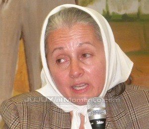 “Voy a empezar de atrás para adelante (…) Yo llevo el pañuelo por que hubo un momento en que algunas de las madres iban muriendo y sentían que les tenían que dejar el pañuelo a alguien para que sigan. En el caso de Olga, no sólo lo dejó a sus hijos o hijas, sino a mucha gente. En una marcha de julio se dedicó a hacer pañuelos y entregarlos. Entregó a periodistas y a mucha gente. Más de 100 pañuelos”.