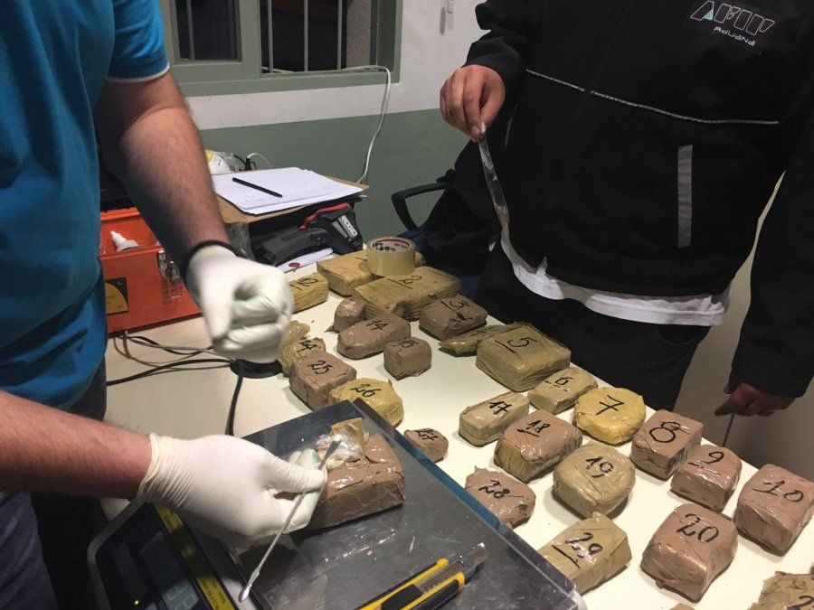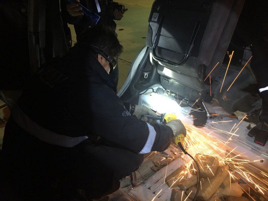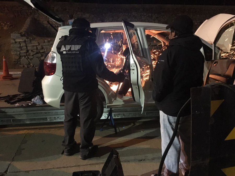 Procedieron a cortar con amoladoras y taladros en el chasis las cubiertas metálicas del piso y de la parte posterior del asiento trasero, para extraer 30 paquetes de diversas formas y tamaños que envolvían una pasta, por un peso bruto total conjunto de 8.355 gramos, cuyas muestras fueron sometidas a los reactivos de ensayo preliminar de campo por parte del Perito Oficial de Gendarmería Nacional, con resultados positivos a la presencia del estupefaciente cocaína.