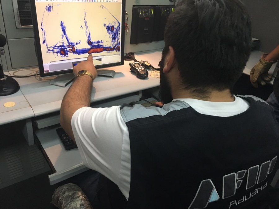 Al revisar en la fosa vehicular las partes inferiores del auto, por unos orificios del chasis notaron unos objetos en el interior de la barra central, cubiertos por cinta de embalaje. Dieron intervención al camión escáner móvil asignado temporalmente por la Dirección Regional Aduanera Noroeste, y por diferencias en la densidad de las imágenes, observaron en pantallas que en el interior de unos compartimentos de la barra central del piso y del respaldo del asiento trasero, se encontraban unos elementos extraños.
