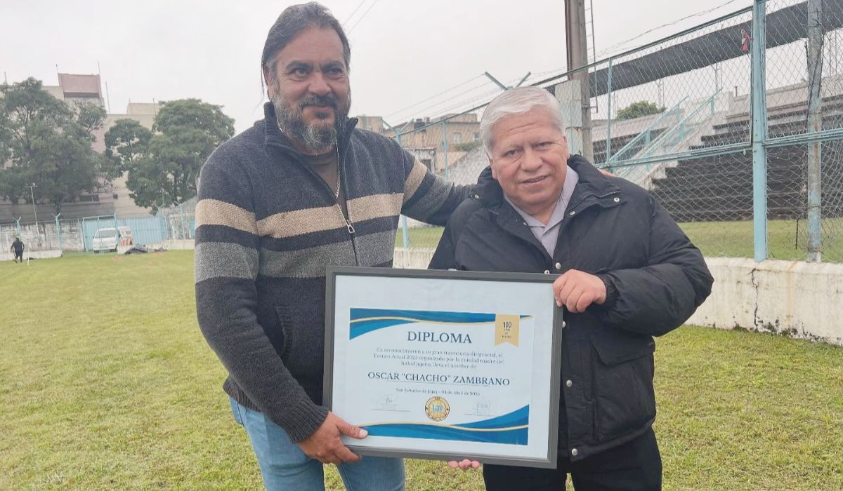 "Chacho" es un dirigente que aportó su granito de arena para el crecimiento del fútbol Jujeño de manera incansable y dejando su huella. Zambrano estuvo acompañado por su familia y el actual presidente de la Liga, Marcelo Sánchez, que le entregó una plaqueta recordatoria.
