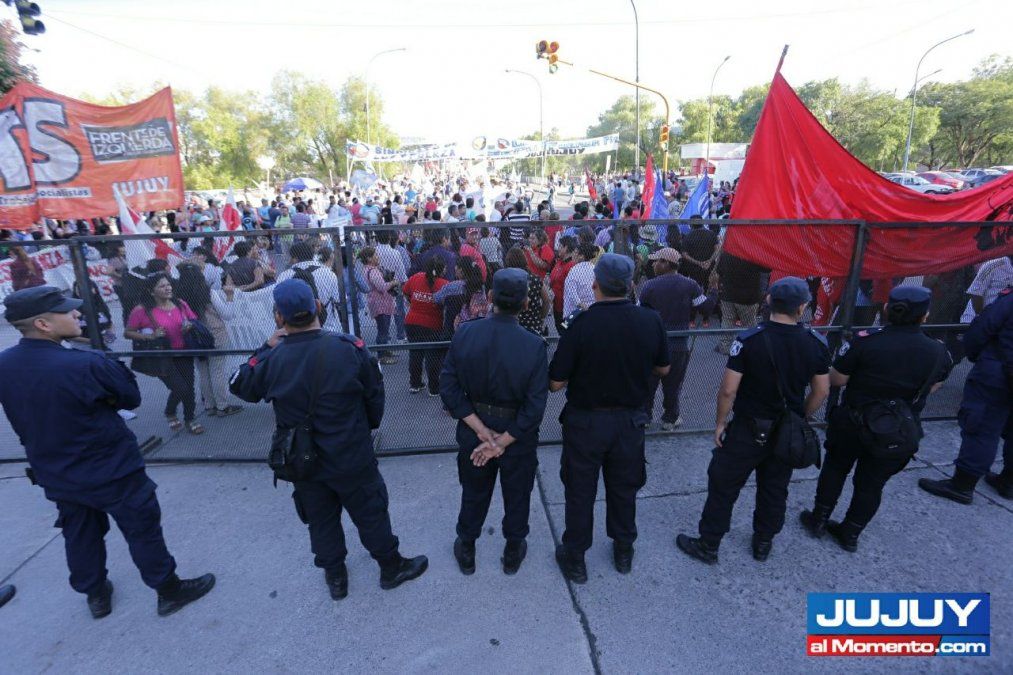 Con un importante operativo policial desde Casa de Gobierno a la Legislatura, se espera por el discurso del gobernador Morales en la apertura de sesiones. Mientras tanto los gremios movilizan y protestan en los alrededores del lugar.