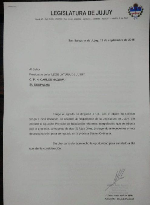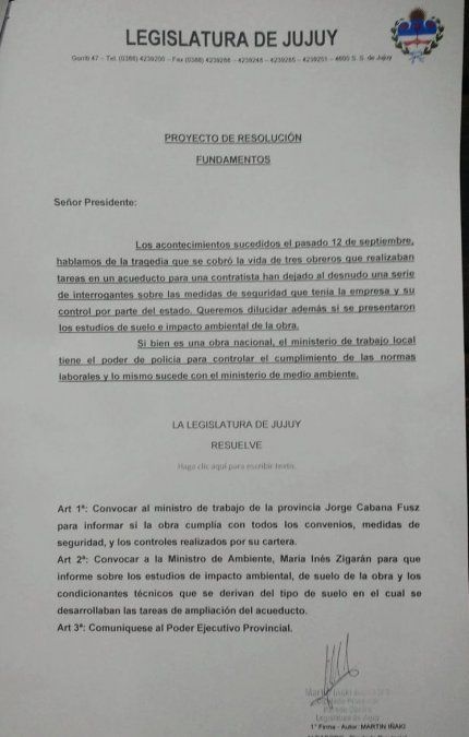 A horas del desafortunado incidente que le costó la vida a tres trabajadores, el legislador Martín Iñaki Aldasoro presentó un proyecto de resolución solicitando la interpelación de los titulares de dos carteras.
