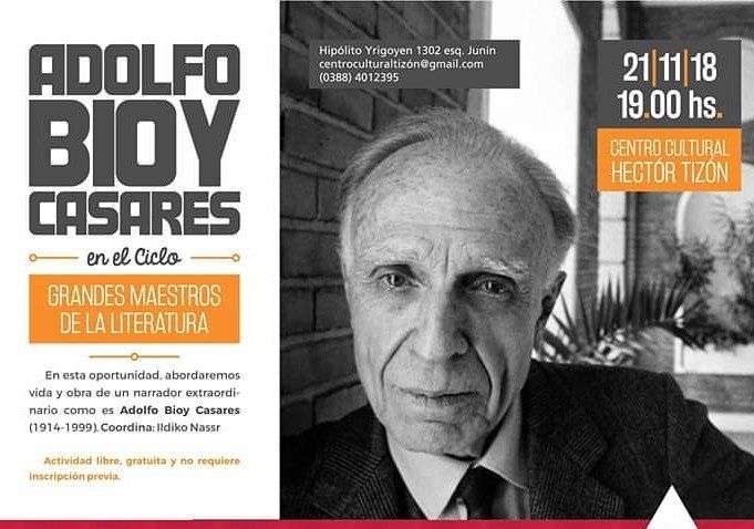 En el marco del ciclo "Grandes Maestros de la Literatura", se destinará el próximo encuentro a leer la obra del escritor argentino, Adolfo Bioy Casares. La cita será este miércoles 21 de noviembre, a partir de las 19.00, en el Centro Cultural Héctor Tizón.