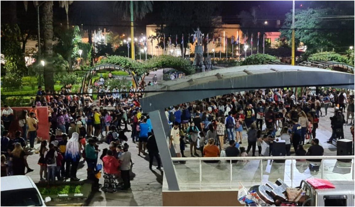 - La Policía dispersó una multitud de jóvenes en la Plaza de Libertador Gral. San Martín.