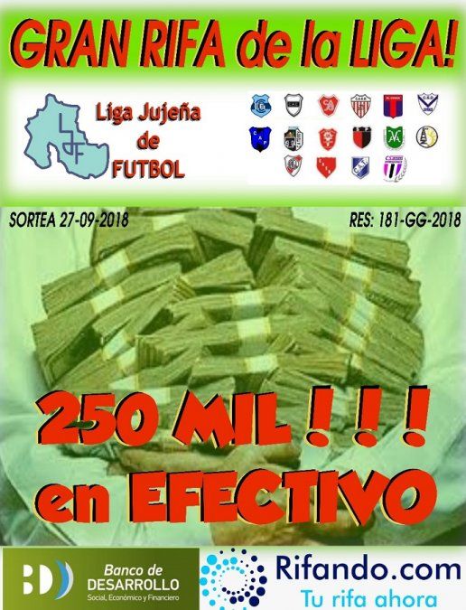 Debido a la poca venta de números, la rifa de la liga jujeña de fútbol fue suspendida. La misma iba a ser sorteada el próximo 27 de septiembre.