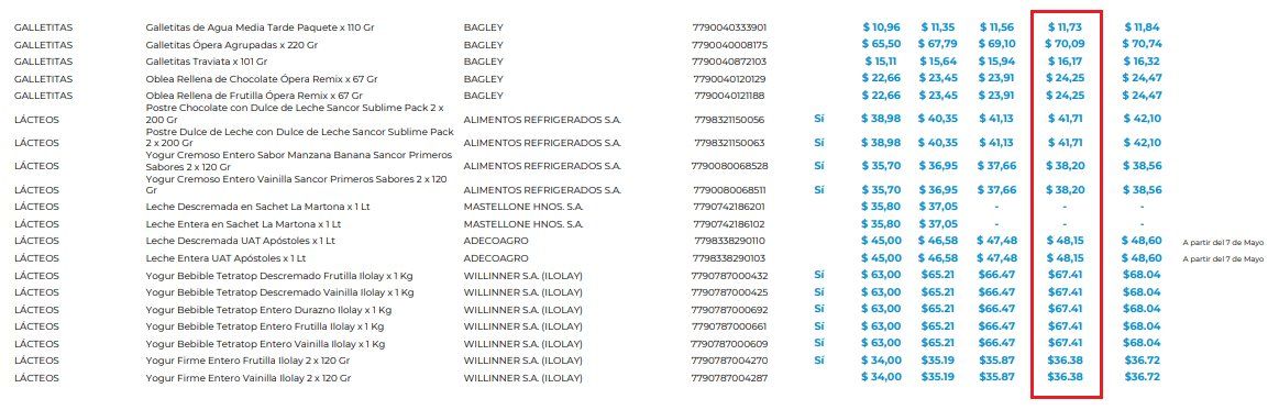 Entre esos 60 productos hay aceites, arroz, harinas, fideos, leche, yogur, yerba, infusiones, azúcar, conservas, polenta, galletitas, mermeladas y bebidas.