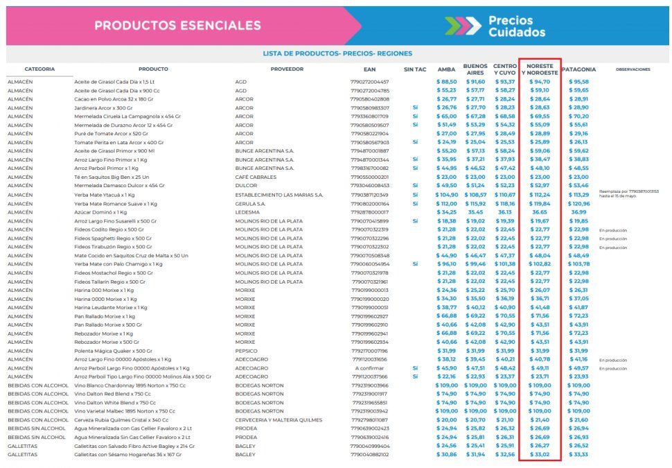 Son parte del paquete de anuncios que se concretó ayer y están dentro del Precios Cuidados. Son catorce categorías: leche, fideos, aceite, arroz y otros. En esta nota, el detalle de los precios para el NOA.
