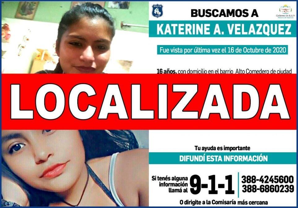 El Comité Interinstitucional de Actuación en casos de desaparición informó que Katerine Velázquez pudo ser localizada este sábado y se encuentra en buen estado de salud.