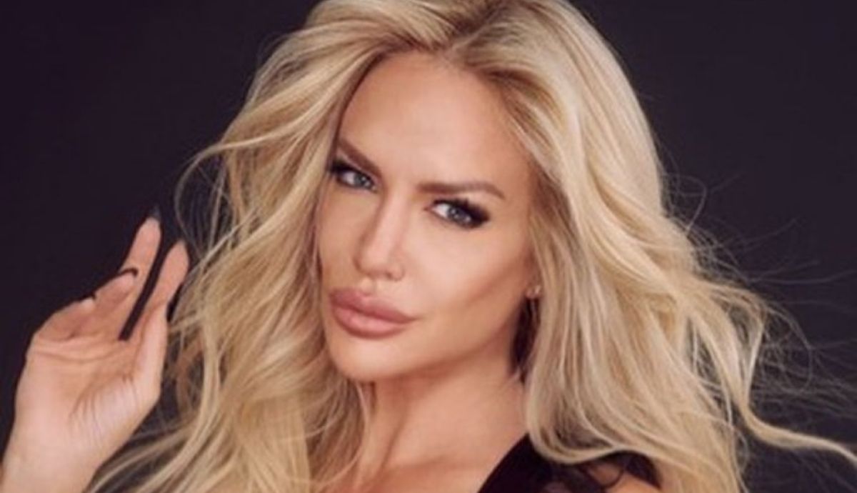 Luciana Salazar con catsuit de encaje, bucaneras y mini cartera Hermès
