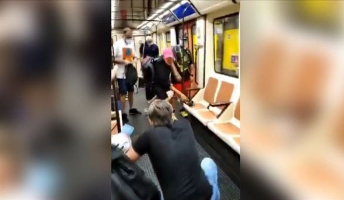 Una tremenda escena fue filmada en el Metro de Madrid. Sucedió cuando un agente sanitario le pidió a un hombre que se pusiera la mascarilla o barbijo, práctica obligatoria en el transporte público español.