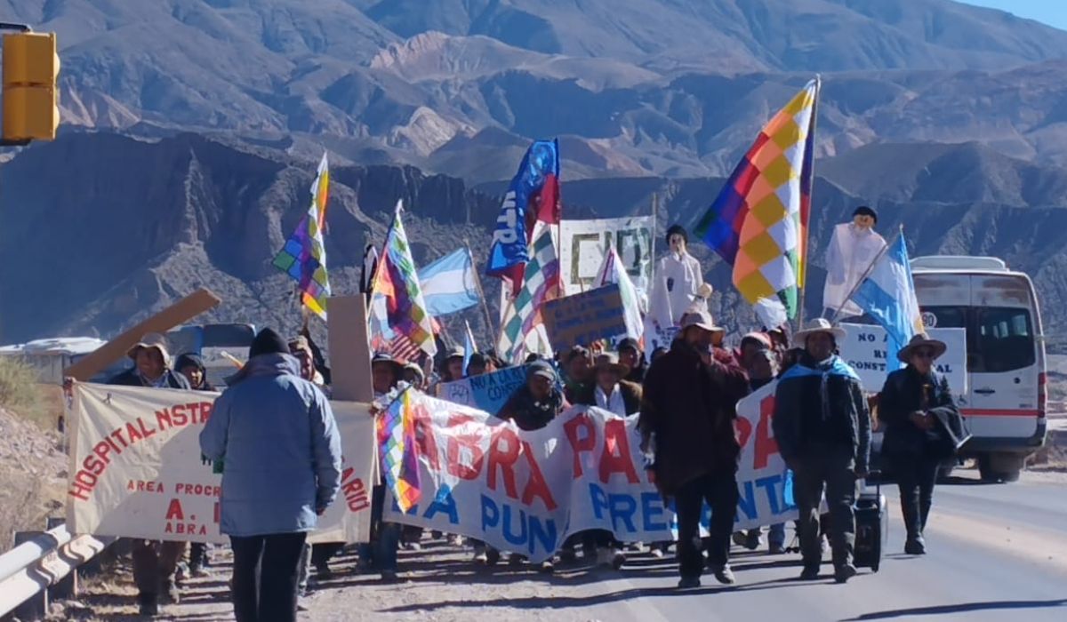 Habitantes de diferentes comunidades originarias de Jujuy marchan hasta la Capital provincial, en rechazo a la Reforma Constitucional. Partieron ayer desde Abra Pampa y este jueves pasan por Tilcara, Maimará y Purmamarca, para llegar mañana viernes y sumarse a la protesta de los docentes y trabajadores.