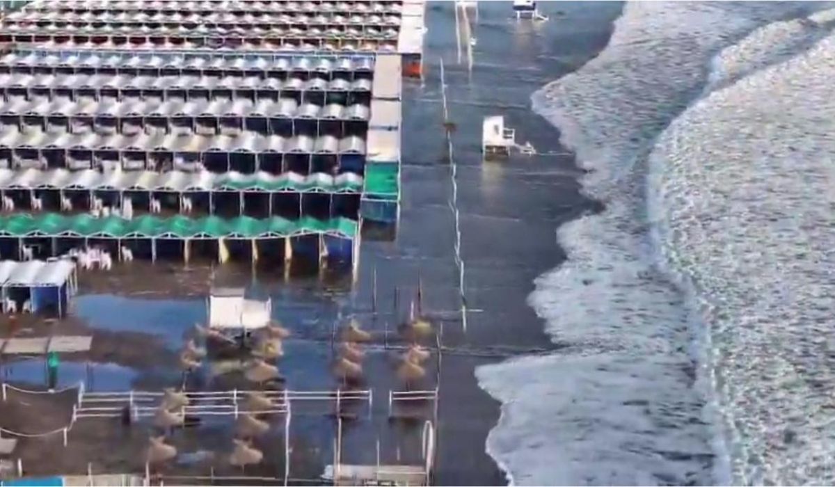 Infraestructura en riesgo: En varios sectores, el agua superó las garitas de los guardavidas, rodeando las estructuras del personal de seguridad.