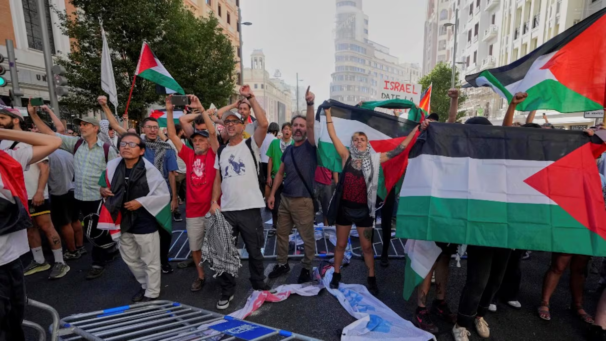 “¡Esta Vuelta, la gana Palestina!”, gritaban los manifestantes propalestinos que impidieron que los ciclistas llegaran a las calles de Madrid para la tradicional última etapa de la prueba.