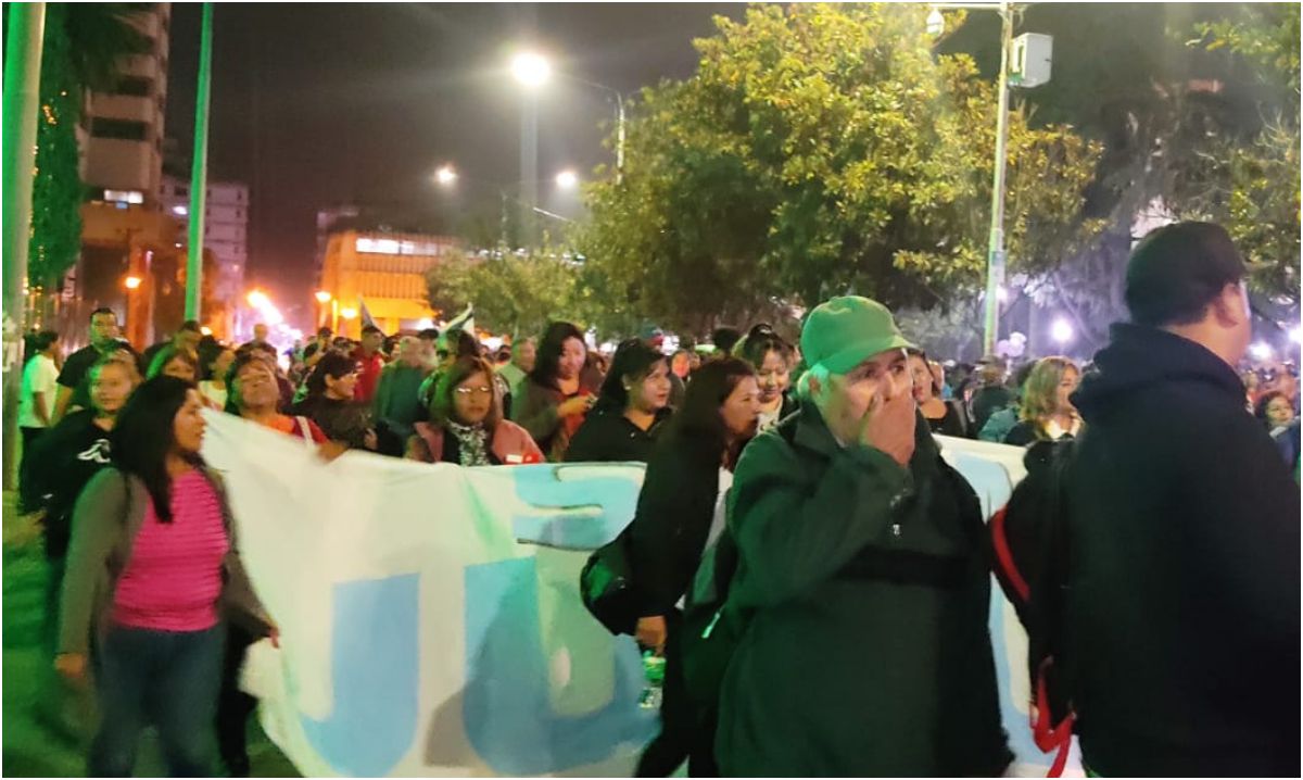 Ya en horas de la tarde noche, volvieron a movilizarse con una nueva “marcha de antorchas”. La convocatoria tuvo gran adhesión y además ganó el apoyo de profesores de CEDEMS que pese a haber levantado sus medidas de fuerza decidieron acompañar la lucha.