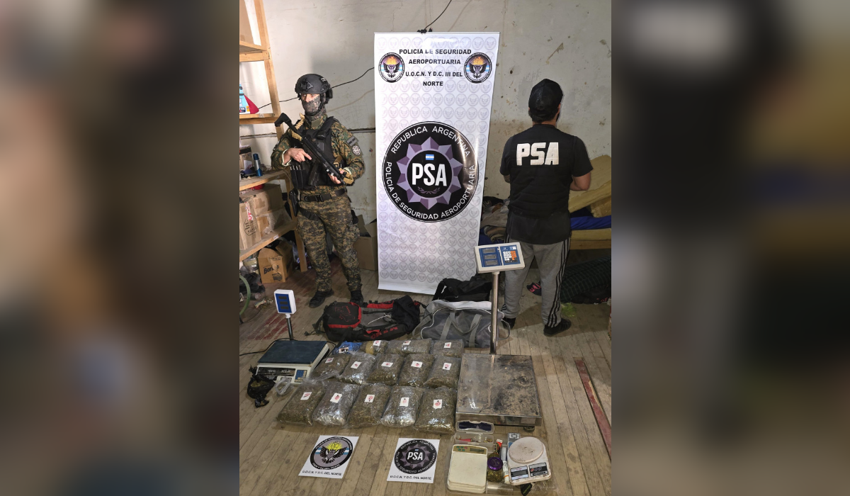 Posteriormente, los uniformados allanaron un domicilio en la misma ciudad. Durante la requisa, detuvieron a otros dos hombres y secuestraron 14 paquetes rectangulares de nylon que contenían envoltorios de marihuana listos para su distribución.